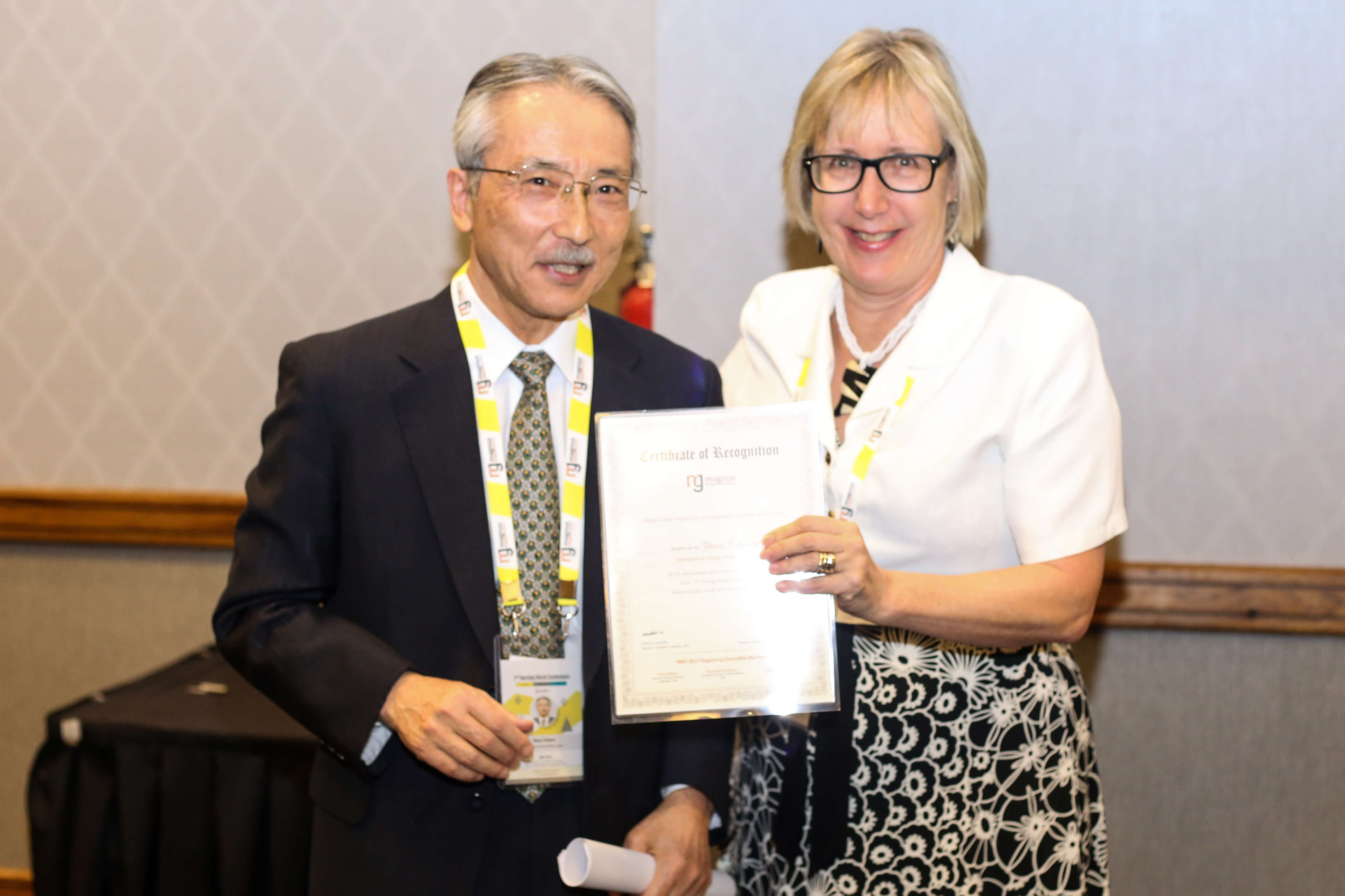 Tetsuo Fukawa felicitated by Mary Val Palumbo