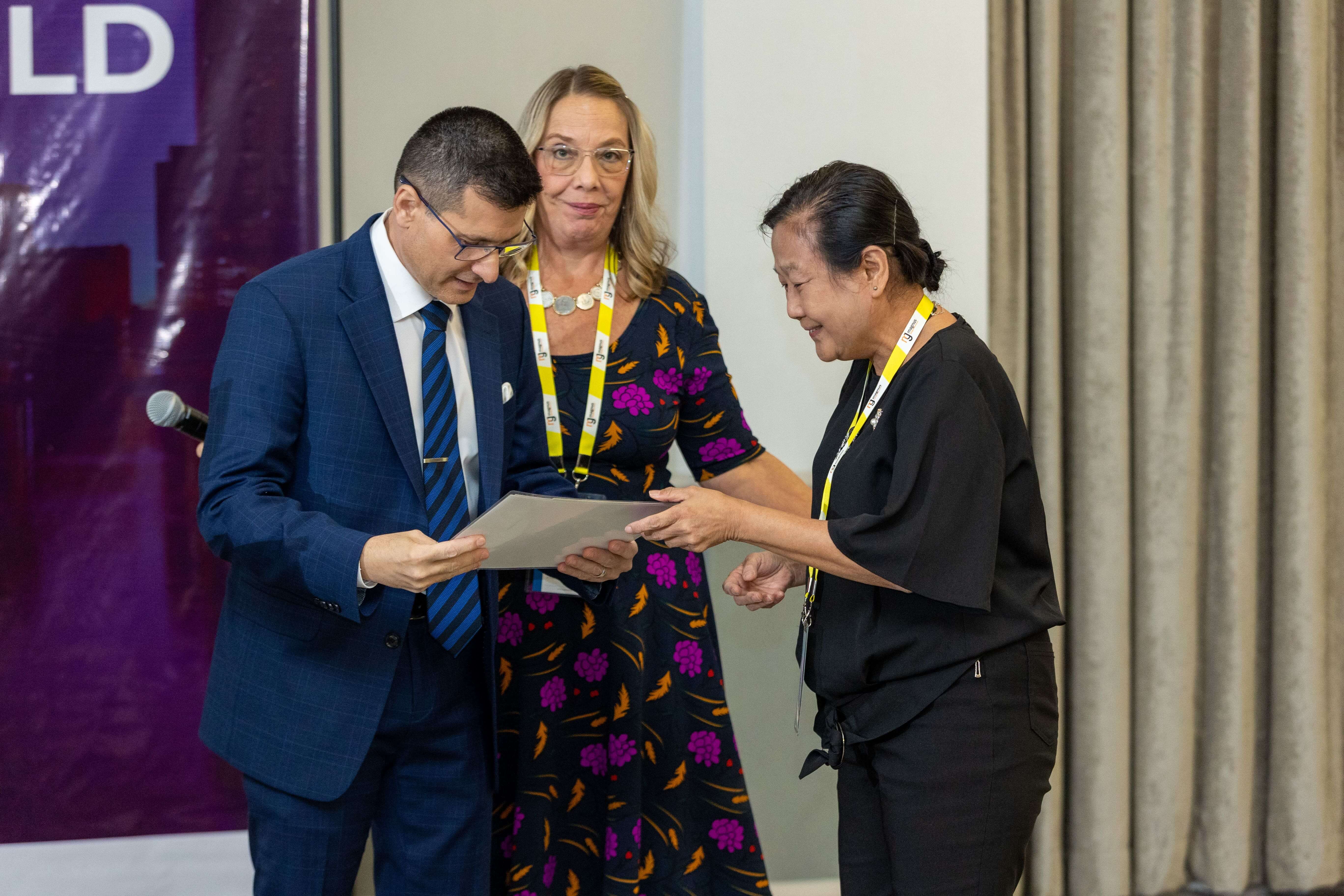 Carlos A Archilla felicitating Jane Png Hong Hock