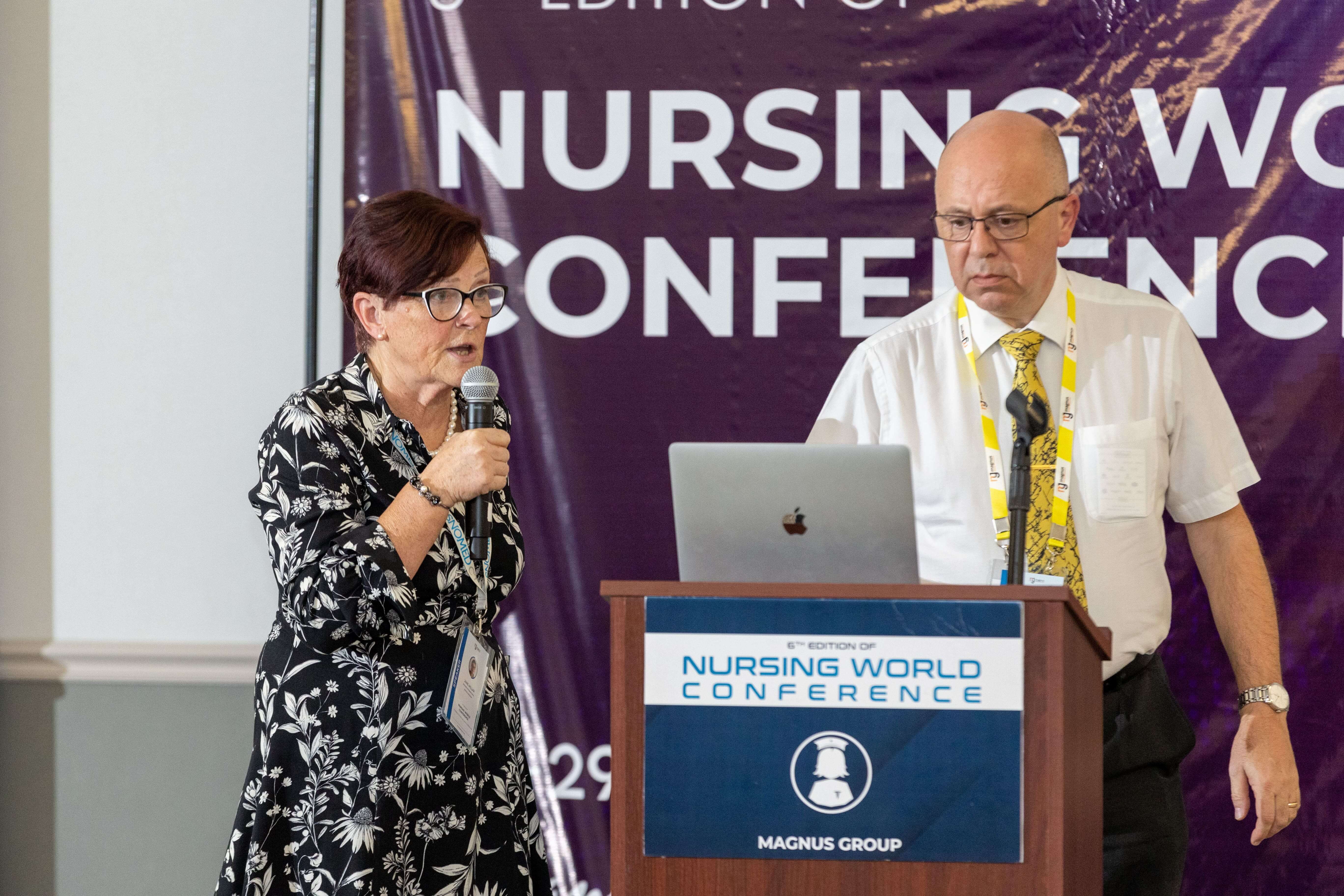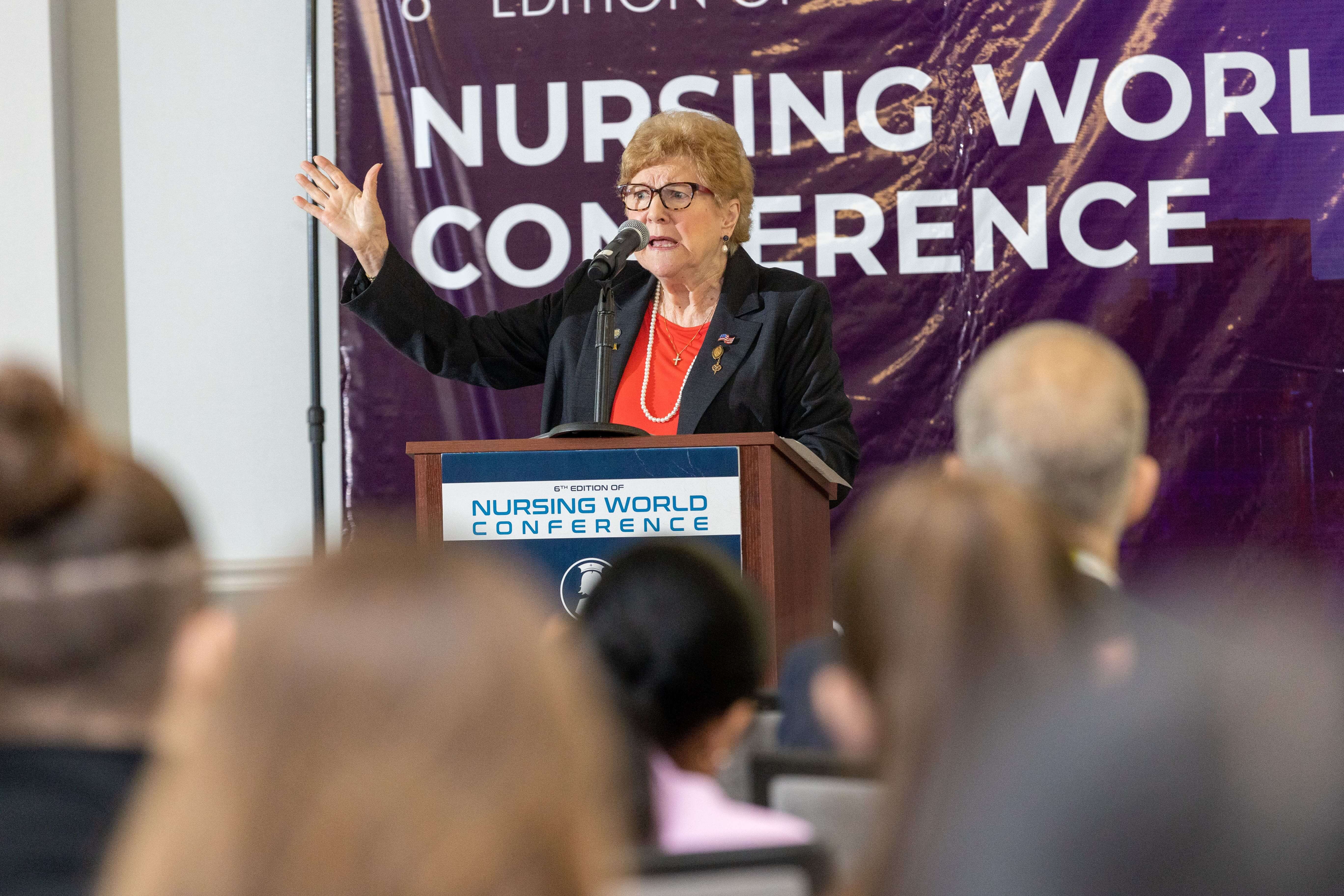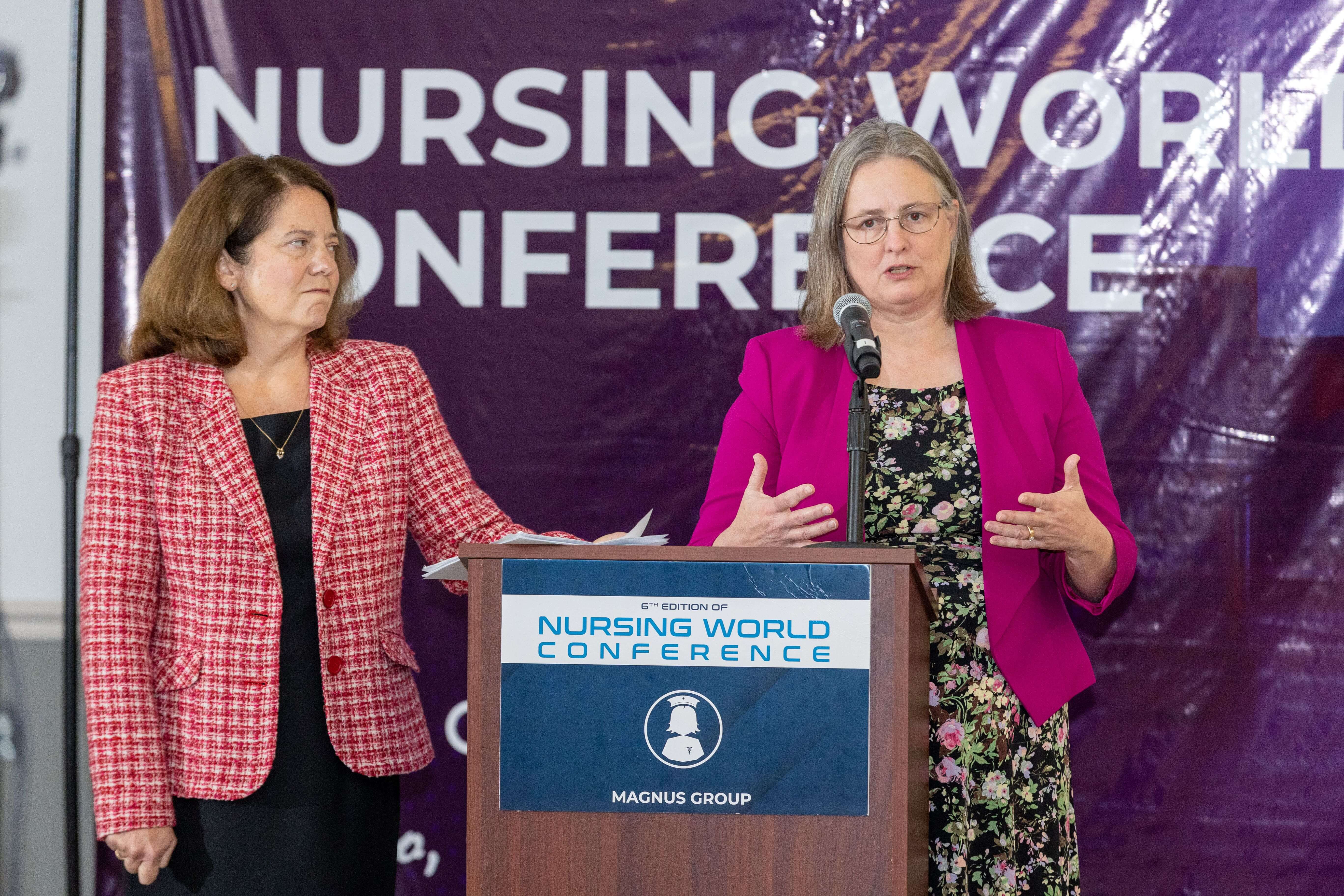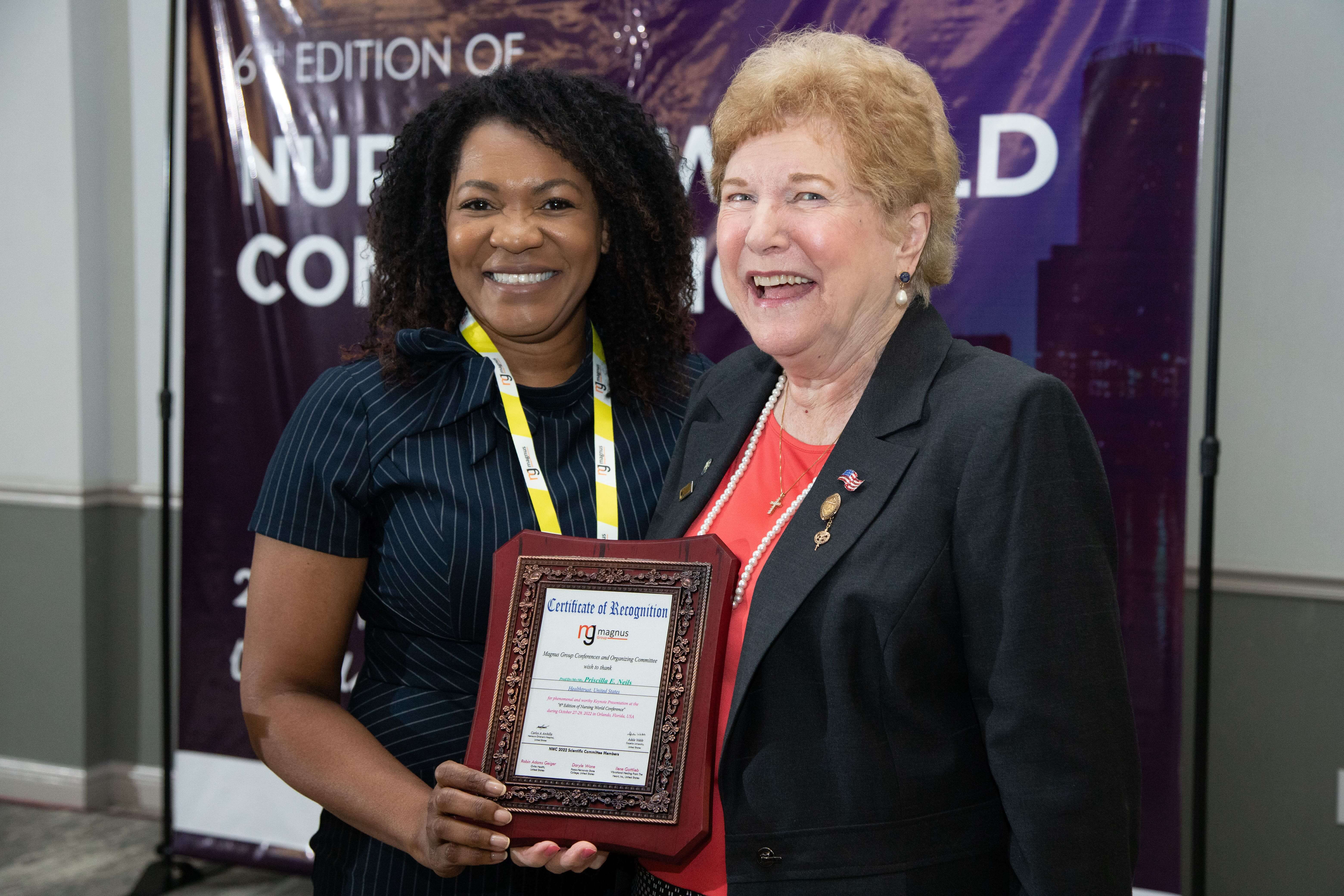 Robin Adams Geiger felicitating Priscilla E. Neils