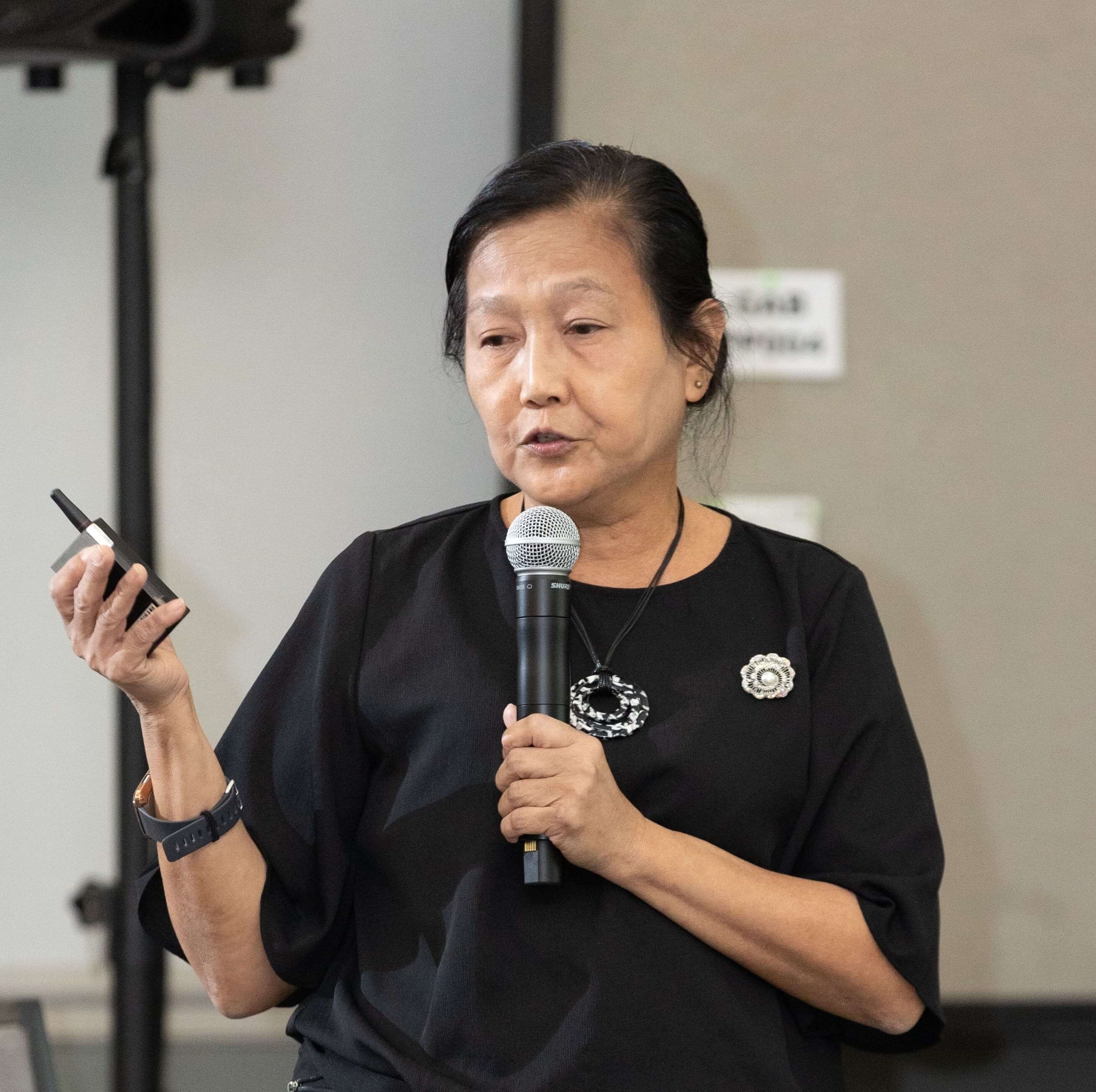 Toni Hawkins felicitated by Jane Png Hong Hock and Lisa Y Foertsch