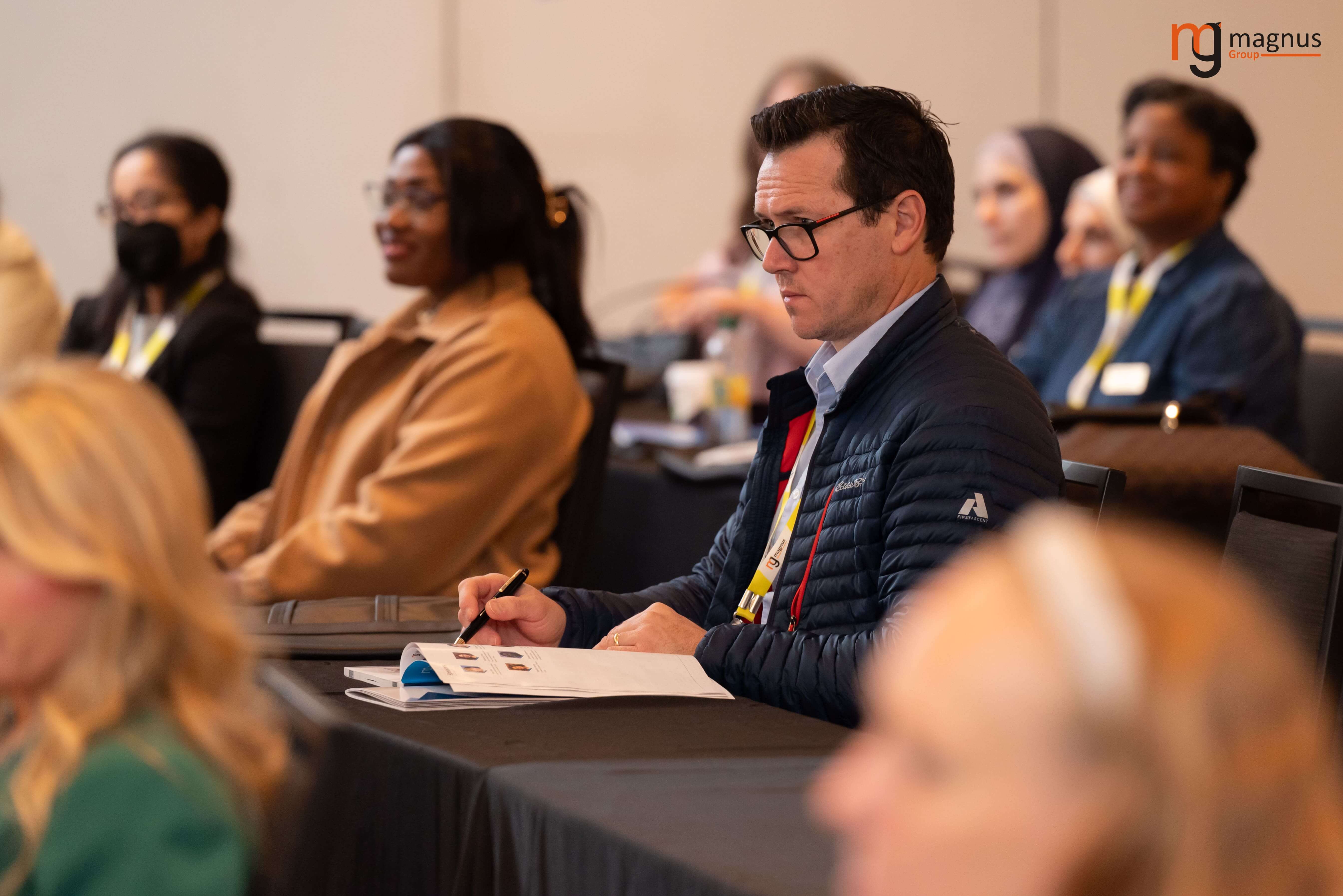 Francisco Bielinki's attentive note-taking during the presentation