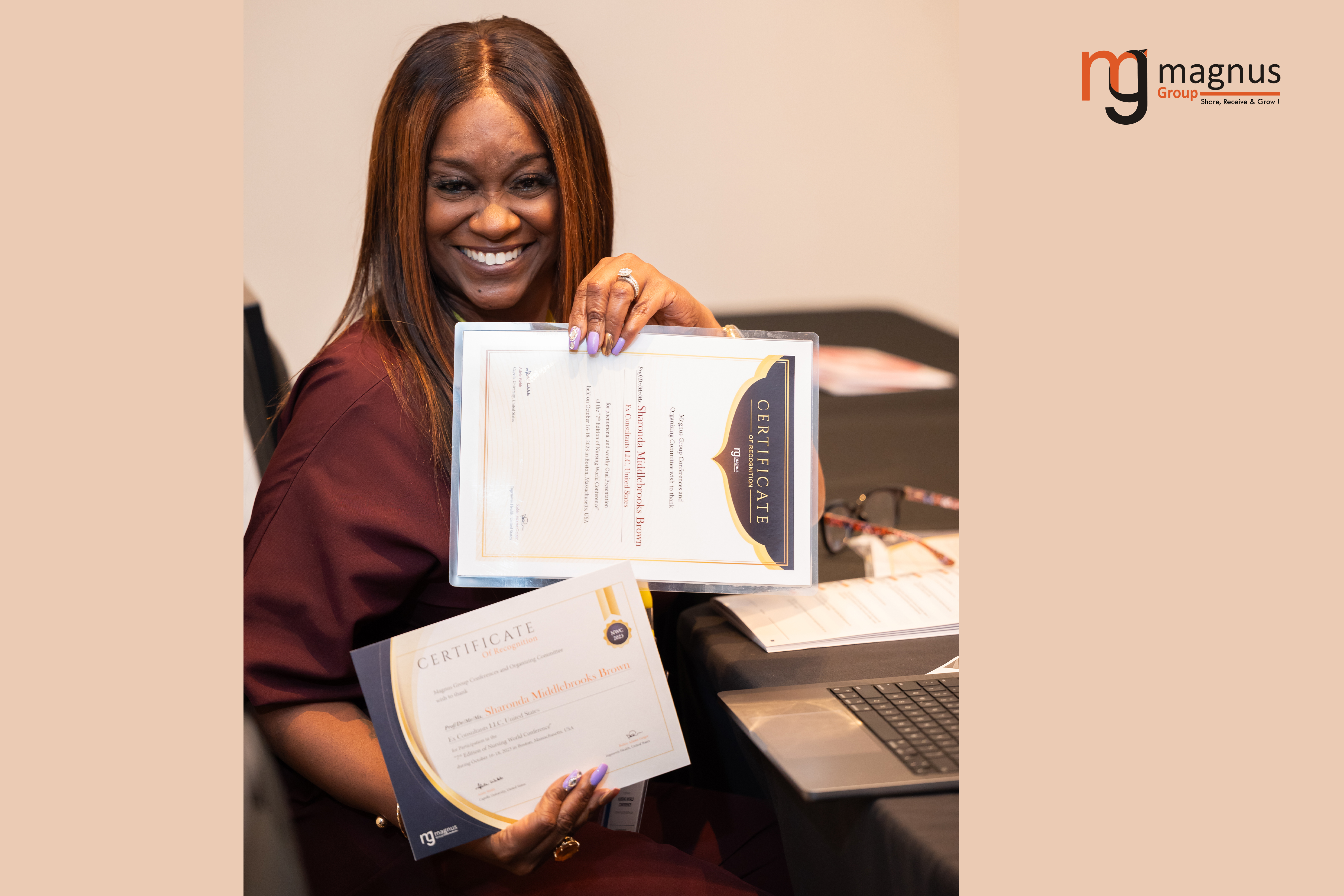 Sharonda Middlebrooks Brown with her Presentation and Moderating Certificates